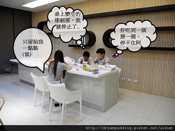 這天一拿到鹹派我們就興致勃勃的來跟小花分享,還借了小花家的廚藝教室,可以在這烹調還有冷氣可以吹,以後我們都來這裡聚餐就好了啊,哈哈。