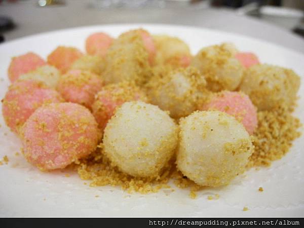 每次去參加喜宴都一定有的炸紅白小湯圓,一定要加花生粉才對味。