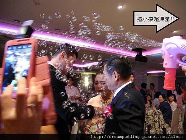 然後父親說了一些感性的話,隔壁的小朋友可能也感動到,拿著泡泡槍開始瘋狂噴射。