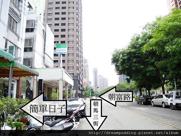 然後我就在朝富路上繞了快10圈有吧,就當我騎車騎到好想哭準備打電話求救時,驚慌失措在路上打轉時準備要掉淚的那一瞬間,一抬頭就看到簡單日子在我前面巷子.......................。