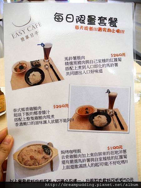 店內主要販售一些輕食類,每日還有限量套餐,食材大多來自自家準備,為求新鮮,每日份量不多,所以限量。