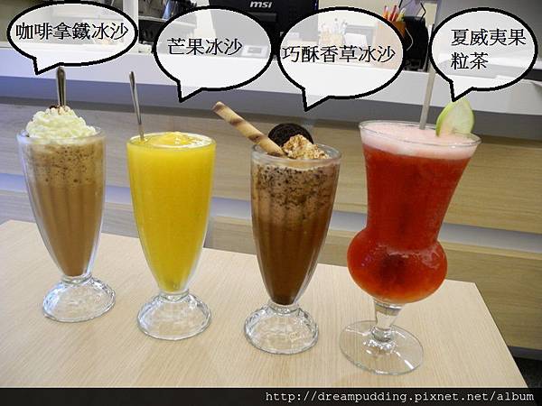 裡面最喜歡的是芒果冰沙,這個季節就是要芒果才對味啊,咖啡拿鐵我沒有喝,下午的時間喝的話我晚上就失眠了
