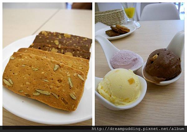 店家自製手工餅乾跟卡比索冰淇淋,手工餅乾吃起來不會過甜,自然的感覺吃起來很舒服,卡比索冰淇淋甜而不膩的冰涼是我的愛好之一。