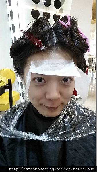 CC很專心地幫我上捲,但我可能肚子餓了,我一直覺得那個白白的海棉片好像蘿蔔糕
