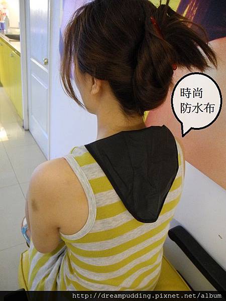 洗髮的時候,助手會在頸後幫顧客圍一條防水布,避免顧客的衣服弄濕,很貼心,是說我覺得這造型好好看喔。