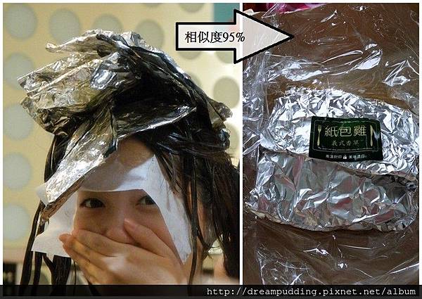 然後鏡頭要來帶一下染髮的小花,我可能真的餓了,為什麼我當下覺得小花頭髮包成這樣很像路邊攤的烤魷魚?