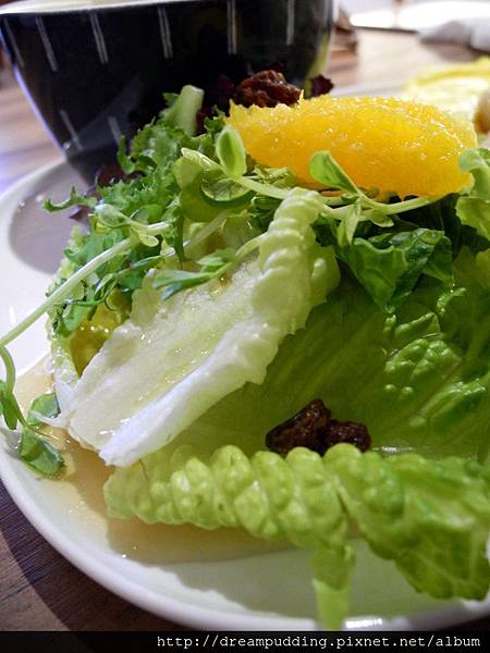 這天的沙拉淋的是水果醬汁的樣子,帶著淡淡的果香風味,清爽了整個夏天。