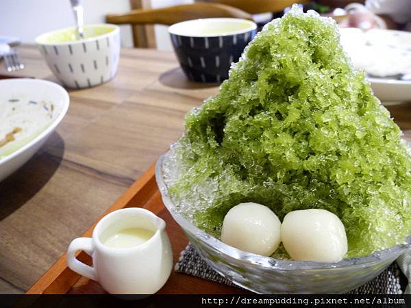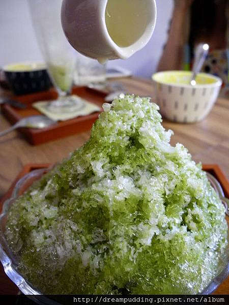 整體吃起來雖然淋上了煉乳,可是卻不會甜膩,抹茶的茶味也不會過重,抹茶汁淋得有技巧且夠多,所以吃到後面不會有像在吃清冰的感覺,都有著淡淡且雅致的清新茶味,如果門口處再來個風鈴聲配上微風徐徐,整個就很有哆啦A夢漫畫裡的場景了。