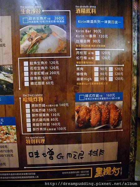 這間黑提灯是看了豬飛的文被燒到,想說一定要找天來吃,結果這天在電影院看完等一個人咖啡(超好看!一定要去電影院看喔!),沒想到天色已晚,本來想說的下午茶後來變成晚餐了,想說平日應該不用訂位,結果到了現場爆滿還需候位,晚上8點多啊,大家都這麼晚吃晚餐阿>////<