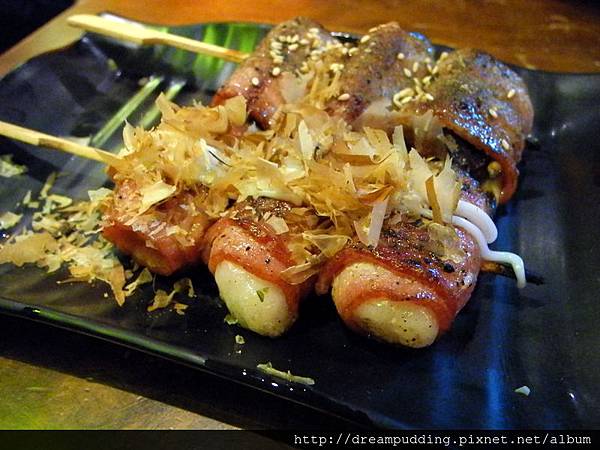 可是他真的超級燙的,肥美的培根跟麻糬一塊吃,口感Q彈帶點潤澤,還有點飽滿感,上面還有柴魚片跟美乃滋畫龍點睛增加風味,很奇特的口感,是不錯吃的,可惜有點略油。