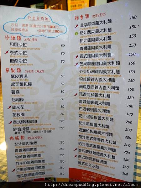 這是第一次去的時候拍的菜單,現在菜單有點變了,現在是以醬的口味來區分,以前要加價的海鮮口味現在也都另外獨立出來了,我現在要寫文才發現這菜單,跟我上星期去的時候不一樣>///<。可是價位上是沒有多大的起伏變動的。(菜單於2015年7月更新囉!FB粉絲頁有最新的菜單價位喔!)