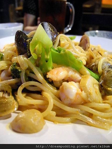 芒果咖哩海鮮義大利麵,這也是有再額外加30元海鮮喔,世說加了30元也才200初,份量又多,超級無敵划算。