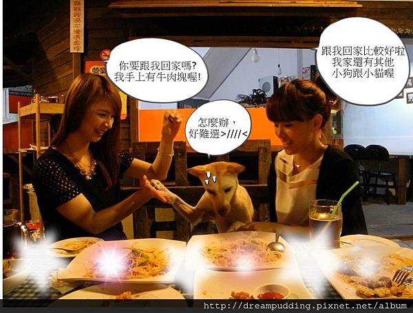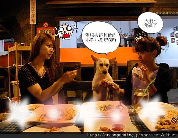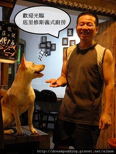 店狗Mina很乖,如果沒有老闆的命令,他都在門口顧著,不敢下來地上走動,不過白天可能比較熱,所以白天去就沒看到他在門口顧店了。Mina是老闆在路邊救的受虐犬,將牠醫治好之後就自己收養了,所以Mina看著老闆的眼光是一種閃閃發亮的崇拜眼光。
