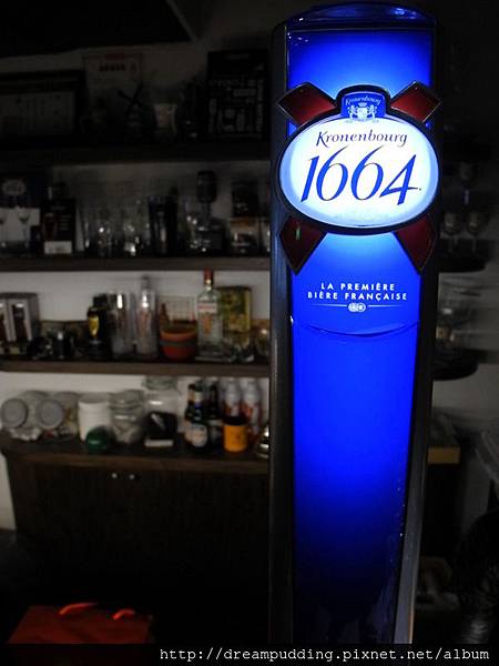 這是後面的型男客人點的可倫堡1664原味生啤,是大麥啤酒,限量旗艦法國啤酒塔,有3000ML,才1000元。