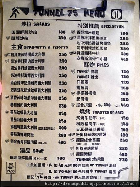 Tunnel 75餐點價位平價,食物美味,酒類也好喝,服務生也好親切,還有優質型男,很值得一來的好店阿~那個酒香系列的義大利麵非常值得一點!麻油海鮮雞湯也好特殊,日耳曼辣香腸也不錯,今天吃的我們大家每道都滿意,下次聚餐要約這裡啦>////<