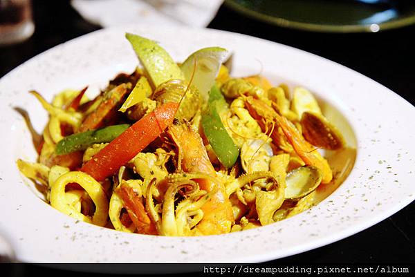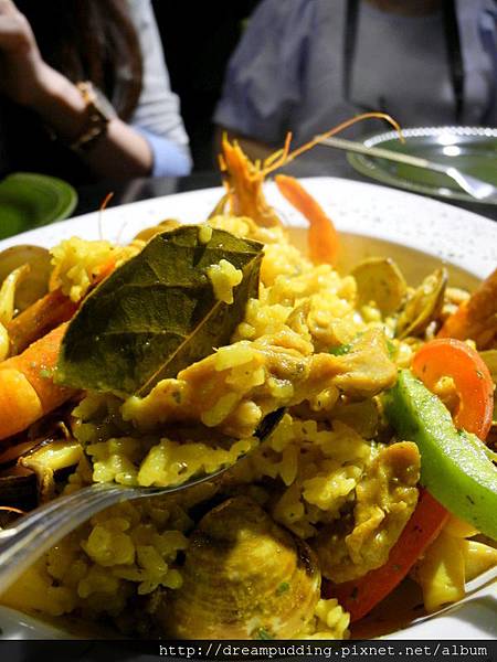 用了許多辛香料、還有黃薑粉,香氣十足,分量多,大約兩人份,米粒微緊密,口感有點蓬鬆帶點微微的軟,吃得出香料的香氣。