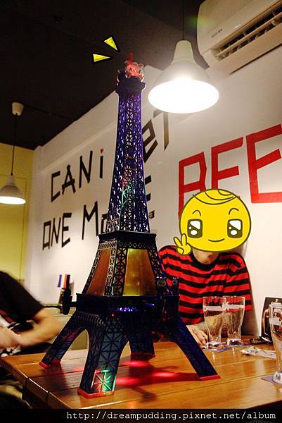 不過這是限量的,有數量限制,我忘記小柏說是3個還4個了,所以如果想喝這個鐵塔酒的要早點去點,不然就只能喝一般玻璃杯子了。