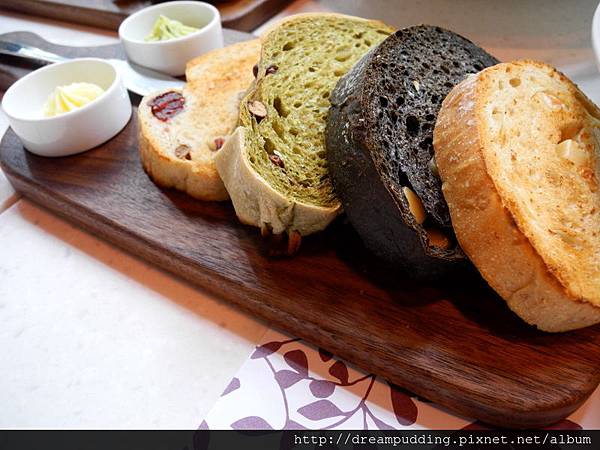 附餐麵包好吃,口味多種,屬於比較乾爽的口感,所以吃起來帶點微微的酥,很清爽,我們一直說想要問能不能外帶,結果一直不停的問彼此,就是沒人去問店家>////<