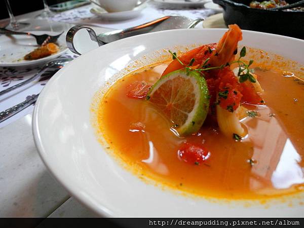 總匯海鮮清湯,口感微酸且清爽帶點鮮。