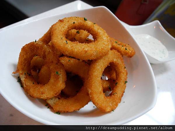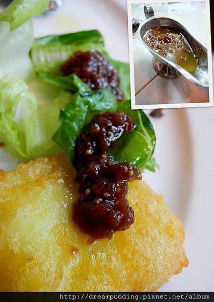 海鮮有炸魚塊跟鮮蝦還有墨魚圈,搭配的是無花果醬,濃郁帶甜,我很喜歡。
