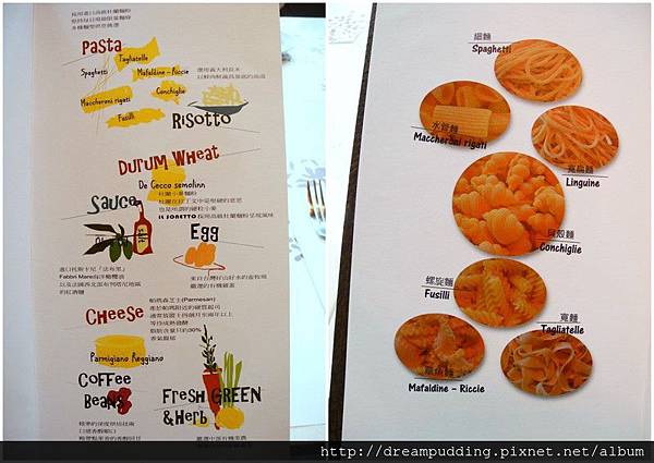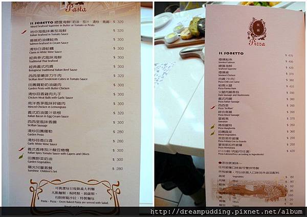 有義大利麵;燉飯、披薩跟排餐,單點價位大多都300起,點義大利麵、焗烤跟披薩有附沙拉跟麵包。