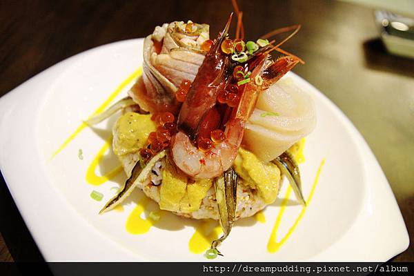 生魚片還捲成玫瑰花瓣,看起來更賞心悅目。