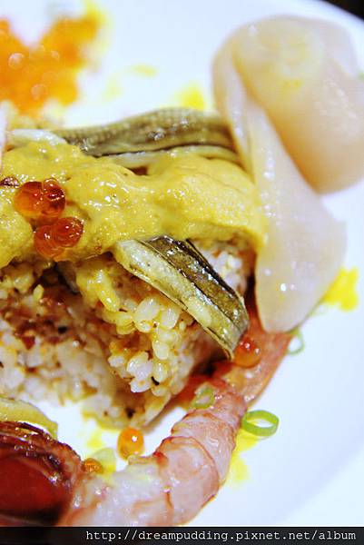 我喜歡醋飯加鮭魚卵,噗激噗激的很有海味。