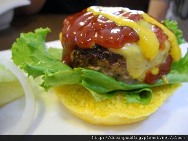 我們選擇手工牛肉漢堡,雖然個頭不大,但是有厚度,而且有肉汁,吃起來飽滿也不會過鹹,肉味也不會過重,整體口感還不錯。