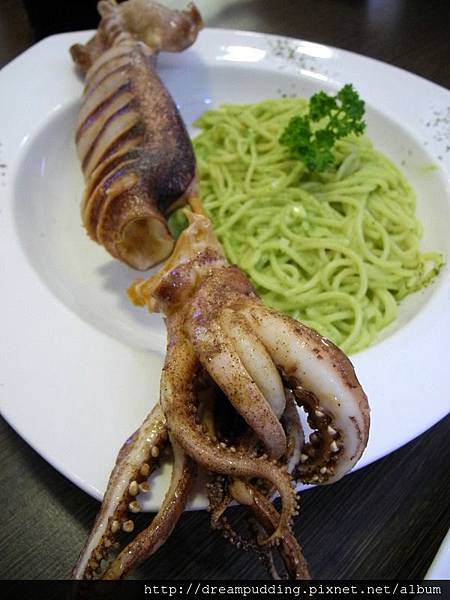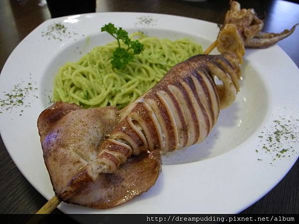 魷魚很大一隻,我本來以為會是夜市那種撒上醬料下去烤的魷魚,結果我想錯了,這裡的魷魚是水煮過後再撒上調味料,口感上不會過膩也不鹹,清爽中有QQ的嚼勁。