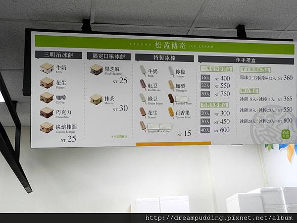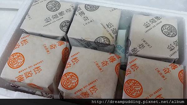 這間松盈傳奇冰淇淋是公司吃好穿好的工程師雲朵仔推薦的,他從去年推薦到今年,我也真的從去年吃到今年,之前去都是現場點個雪泥+冰淇淋,這次總算是一次買了一箱的冰餅回家,詢問服務人員大約能冰多久,期限約一星期,本來還害怕吃不完的,沒想到才3天,16個冰餅就吃光光了。