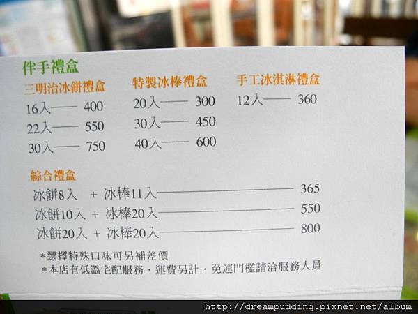 禮盒有這些數量可以裝,冰餅以25元口味計價,若是選價格高於25元的則在另補差價;冰棒則是15元開始計價。