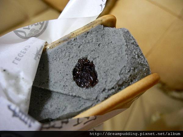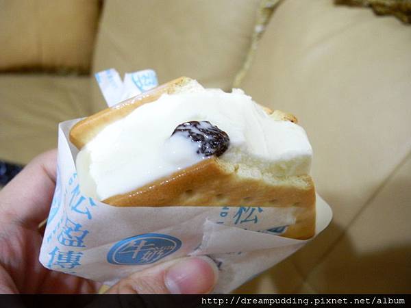 冰餅很大一個,而且冰淇淋很扎扎實實,我最喜歡的就是裡面還有兩顆微甜有點嚼勁的葡萄乾,特製的餅乾吃起來是粹的不軟,跟扎實飽滿的冰淇淋一塊吃,微脆又潤實,口感很棒。