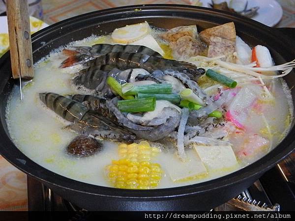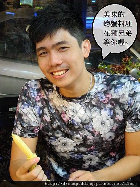 總是把衣服穿很緊且很花俏的圍爐哥第一次吃獅兄弟,也很讚不絕口,後來整個海鮮鍋被他打包回去煮粥了~