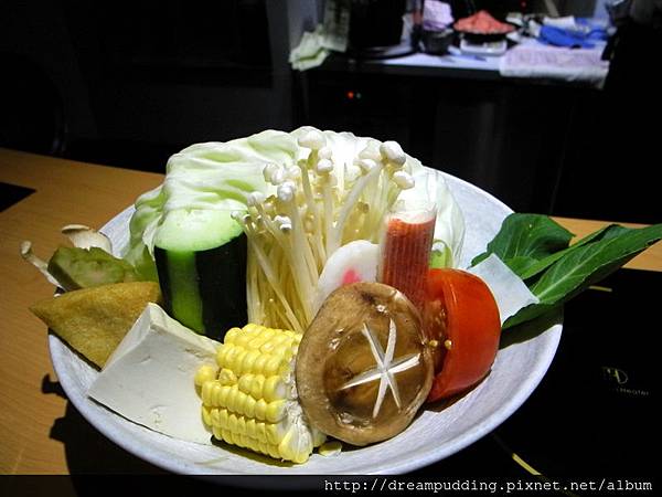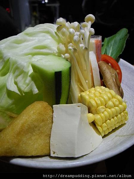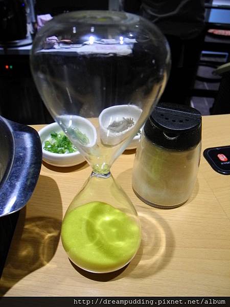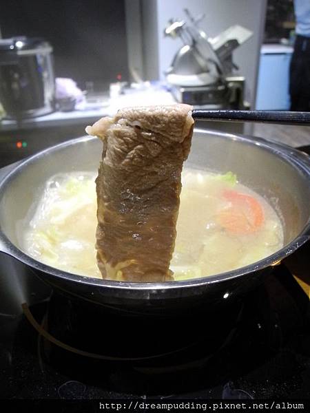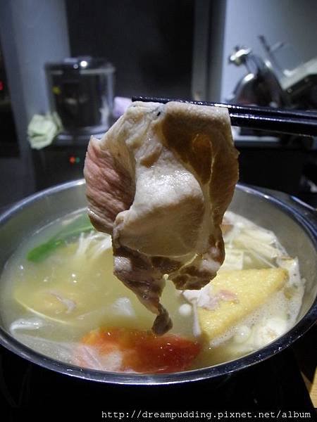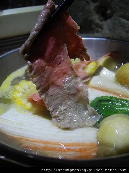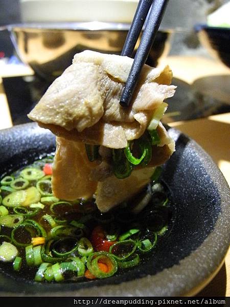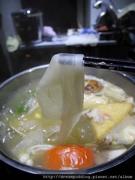 我在調沾醬的時候有點失手,不小心白醋加太多,結果沒想到白醋跟蘿蔔泥還有醬油混一塊很不錯啊,微微的酸肉原本不膩口的火鍋變得更加清爽。