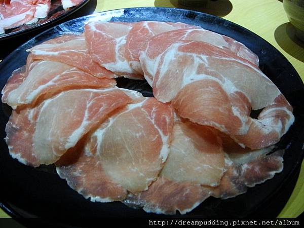 大片有著些微油脂的梅花豬是我的最愛,我超喜歡吃大片略帶油脂的肉。