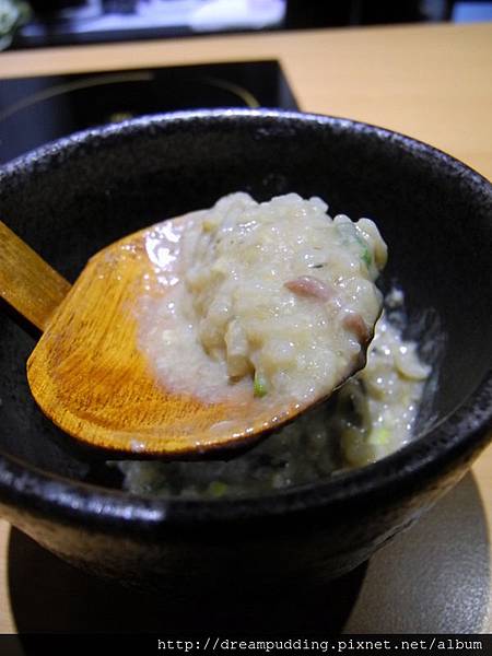 每份鍋物都會附一碗雜炊,每鍋都是一人份的,一鍋也只能煮一人份,因為是用你吃完火鍋後鍋底留下的湯頭加白飯下去煮,所以就是整鍋吃到一滴不剩,感覺超有成就感的。