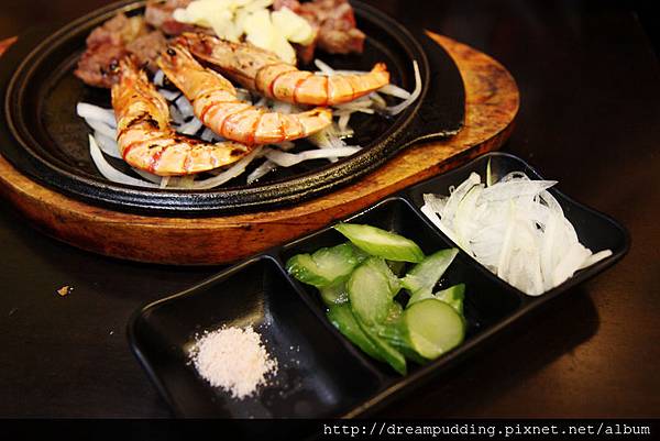 主餐均附酸甜小黃瓜、洋蔥、蒜頭跟玫瑰鹽。