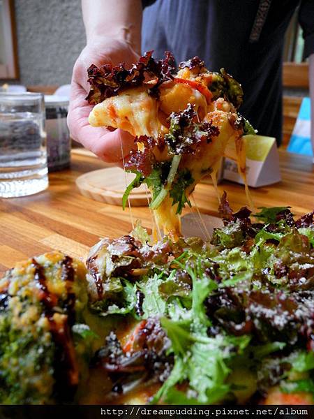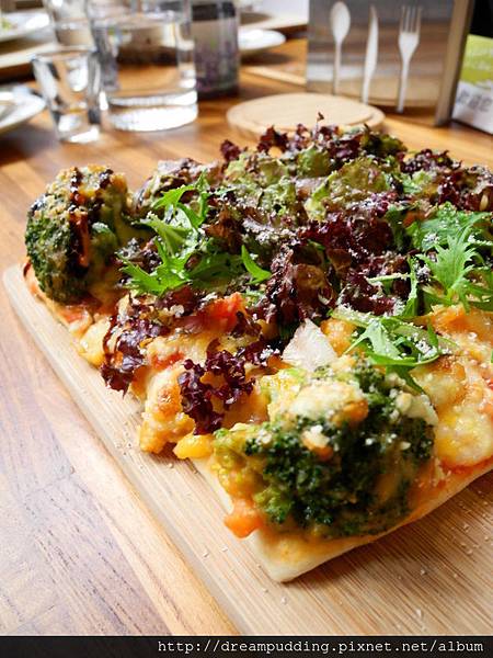 單點的披薩是為不食肉者準備的,加了大量蔬菜讓口感不會過於油膩。
