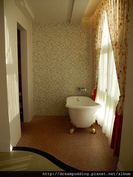 雙人房有配備浴缸,窗外最近的住戶離的超遠超遠,所以在這裡洗澡應該是不會被偷看吧??????雖然我們不是偶像明星,應該不會有人拿望遠鏡偷看,不過心理害羞的話,還是拉一下窗簾好了