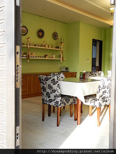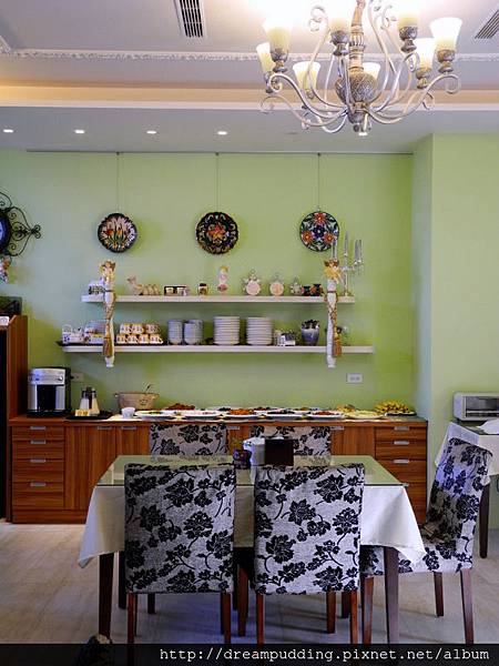 這裡是吃早餐的地方,牆壁都漆成油綠綠,在這裡吃飯很有草原風阿。
