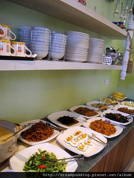 早餐採自助式吃到飽,瑪麗亞一大早就起來準備了,煮了很多樣放在桌子上。