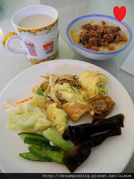 雖然很簡單卻很好吃,尤其是那個小黃瓜,清脆帶甜還有稍微醃過的自然微鹹提鮮,我吃超多,稀飯的話還有我很喜歡的瓜仔肉跟肉鬆可以配,我吃兩碗