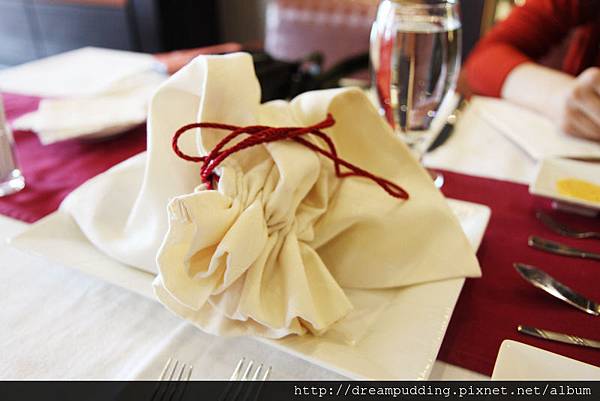 麵包很厚工的用束口袋保護好溫熱上桌。