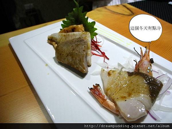 不敢吃生魚片的人也別擔心,親切的服務人員會先詢問,如果不敢吃生魚,會請師傅用炙烤的方式。而且也是很大一片,還能幫蝦子蓋被被
