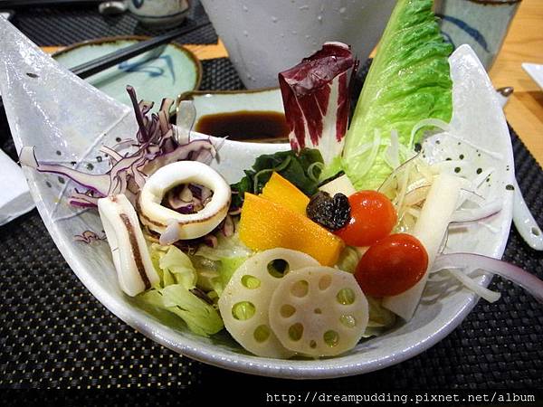 和風沙拉,料很豐富,很大一盤,裏頭還有少見的蓮藕。