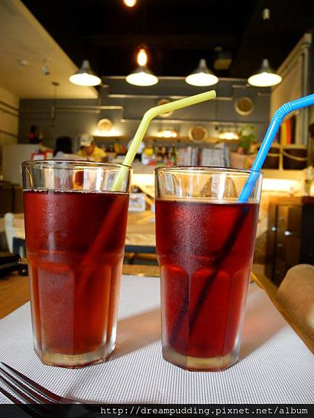 蔓越莓覆盆子汁跟紅葡萄汁,飲料還挺大杯的。