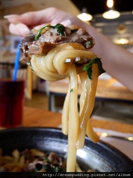 店家將義大利麵改成烏龍麵,日西合併的料理做法。