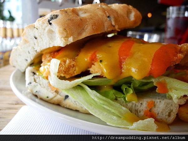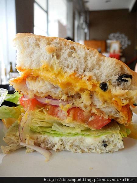 佛卡夏微蓬鬆,有點小小的乾,但是整體搭起來口感是很豐富的,魴魚不油膩,外皮微酥,魚肉細緻,生菜新鮮,番茄也微有汁液。