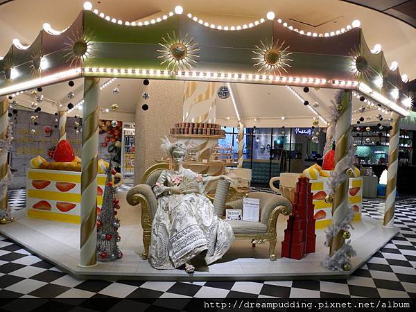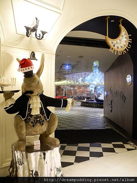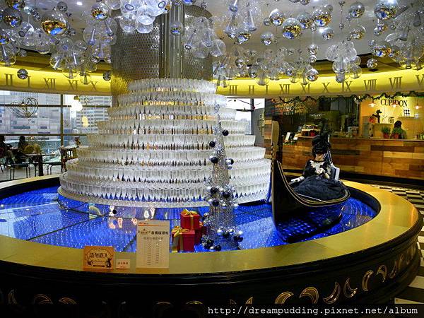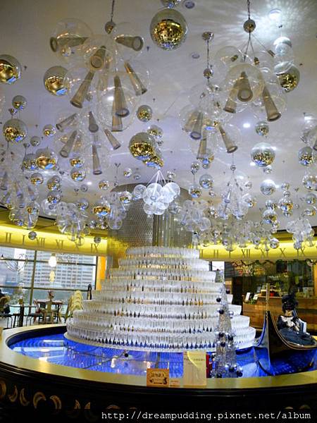 甜蜜王國的主題有分白晝黑夜,所以風格會有所差異,我比較喜歡這個象徵黑夜的香檳塔瀑布,超有FU的,好美。