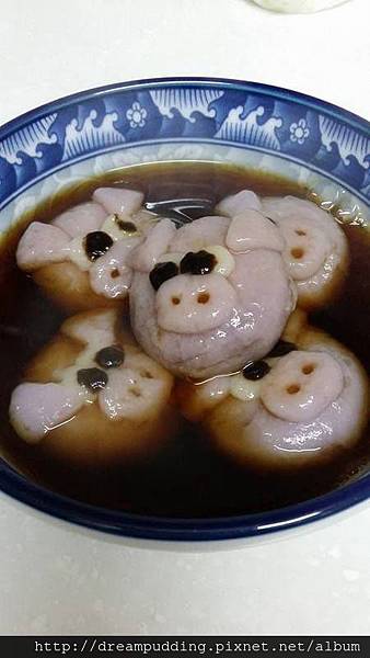 當冬至快來臨的某那天,她在FB上面放了造型湯圓的訊息,大家流了好多言,這次她總算是開賣了,我超開心的(灑花),立馬就訂了10個番薯口味的小豬湯圓